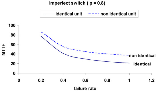 Figure 11. Comparison of MTTF for Identical and Non-Identical Units with Imperfect Switch (p = 0.8).