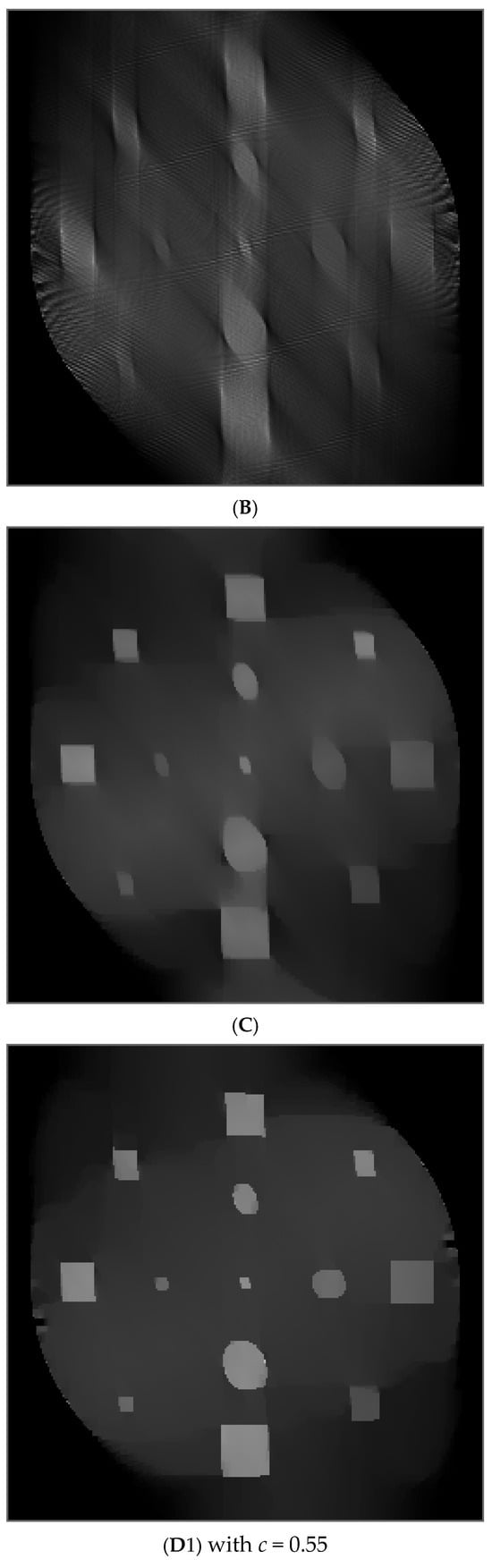 - Sidky, E.Y.; Pan, X. Image reconstruction in circular cone-beam computed tomography by constrained, total-variation minimization. Phys. Med. Biol. 2008, 53, 4777. [Google Scholar] [CrossRef]
