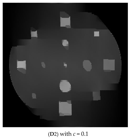 A drawback of the objective function (7) is the difficulty in selecting the control parameter . Instead of minimizing the objective function (7) directly, we propose to alternatively minimize the data fidelity term and the Bayesian term . In this way, the value of tuning parameter α is no longer important. In other words, we use an iterative Projection onto Convex Sets (POCS) algorithm.