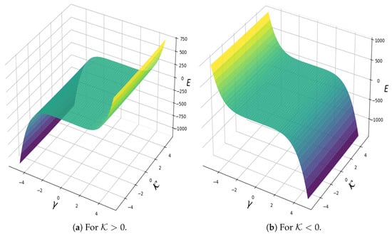 As shown in Figure 4, for , we observe kink soliton behavior, while for , anti-kink behavior appears. The details of phase portraits using Hamiltonian classification are presented in Table 2.