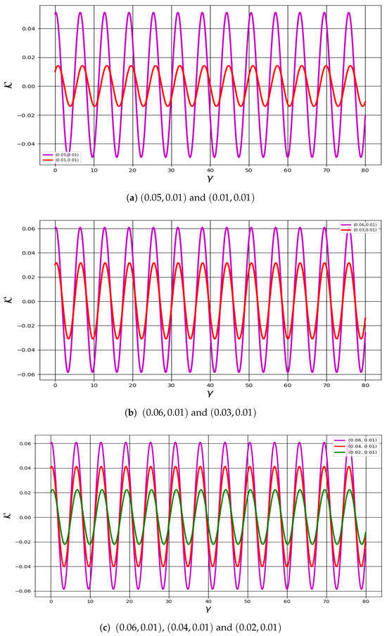This section investigates the sensitivity analysis of the generalized distribution under two distinct conditions, concentrating on the implications of electronic, ion, and electron temperatures. Although sensitivity analysis may not explicitly delineate chaos, it serves as a crucial instrument for examining dynamic systems, as it elucidates how a system responds to variations in its initial conditions or parameters [25]. Minor alterations in initial conditions can precipitate divergent trajectories. Figure 16a–c depict the sensitivity analysis for the model under consideration (12). The classification of sensitivity analysis across varying conditions and parameters is delineated in Table 3.
