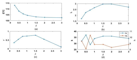 - The complexity of the presented integrated model leads to the difficulty of solving the objective function, where both the non-linear target and non-linear constraint functions increase the complexity of the model. In the literature, many efficient algorithms were developed to solve the optimization problem when establishing an integrated design of production, maintenance, and quality control policy, for example, Pan et al. [22] used Pattern Search Tool in MATLAB 7.0. Charongrattanasakul and Pongpullponsak [11], Yin et al. [30], and Huang et al. [14] adopted the genetic algorithm (GA). Salmasnia et al. [15] and Salmasnia et al. [16] applied meta-heuristic algorithms, etc. Without loss of generality, the GA is adopted to solve the optimization problem defined in Equations (46)–(54). The solution steps using the GA are shown in Table 2: