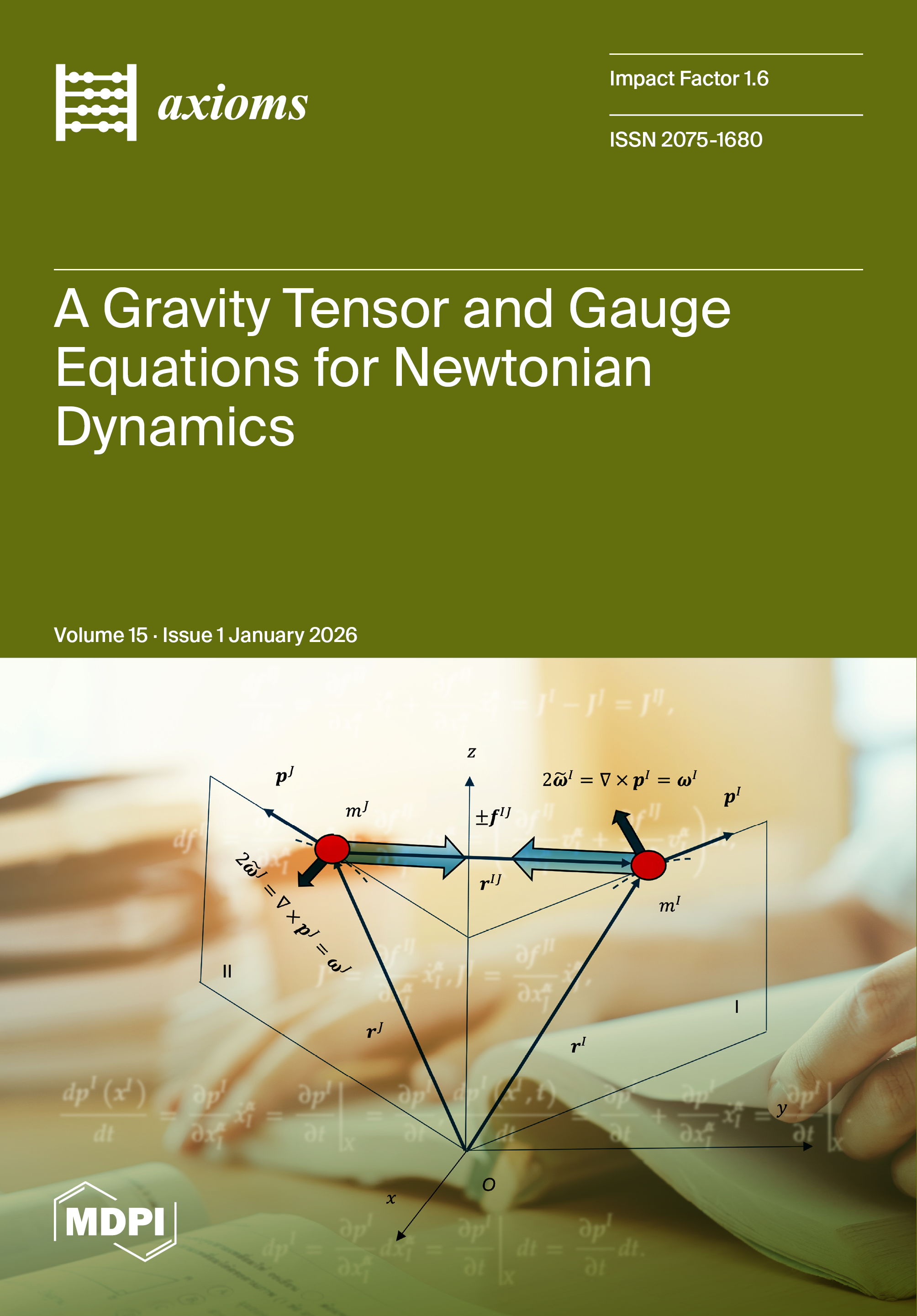 Masses mI and mJ, identified by position vectors rI and rJ, move along their orbits with momenta pI and pJ and interact via the gravitational force fIJ. The curl vectors ωI and ωJ of the momenta are related to their angular velocities ω̃I and ω̃J about their curvature centres of their orbits.