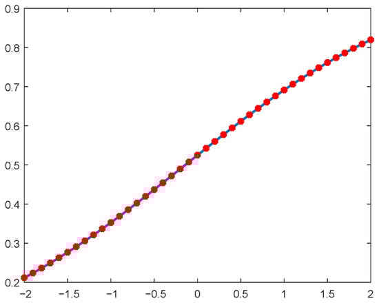 and . Table 11 and Table 12 are given at various times and . The time step size is and , respectively, and . The results of CBS are compared with the septic B-Spline (SBS) using and error norms. As SBS required a lot of computational work and computational time. Furthermore, additional spline conditions are required in SBS to obtain a consistent algebraic system, which are obtained by taking the derivatives of the initial and boundary conditions; still, the results clearly show that CBS outperforms SBS. In Table 13, the and error norms for , and . Figure 6 displays the exact and CBS comparison, which concludes that both are in good agreement. The results show that CBS is efficient and more reliable to deal with the neurodynamical models.