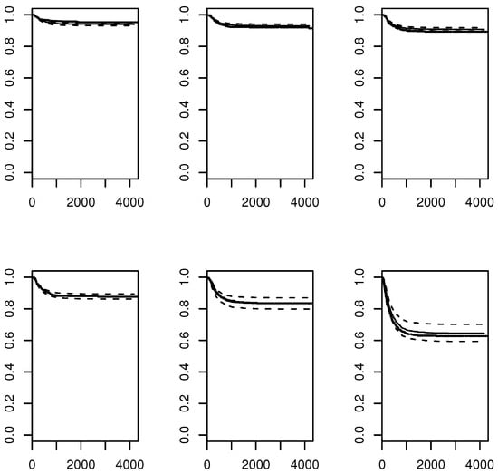 - Kaplan, E.L.; Meier, P. Nonparametric estimation from incomplete observations. J. Am. Stat. Assoc. 1958, 53, 457–481. [Google Scholar] [CrossRef]