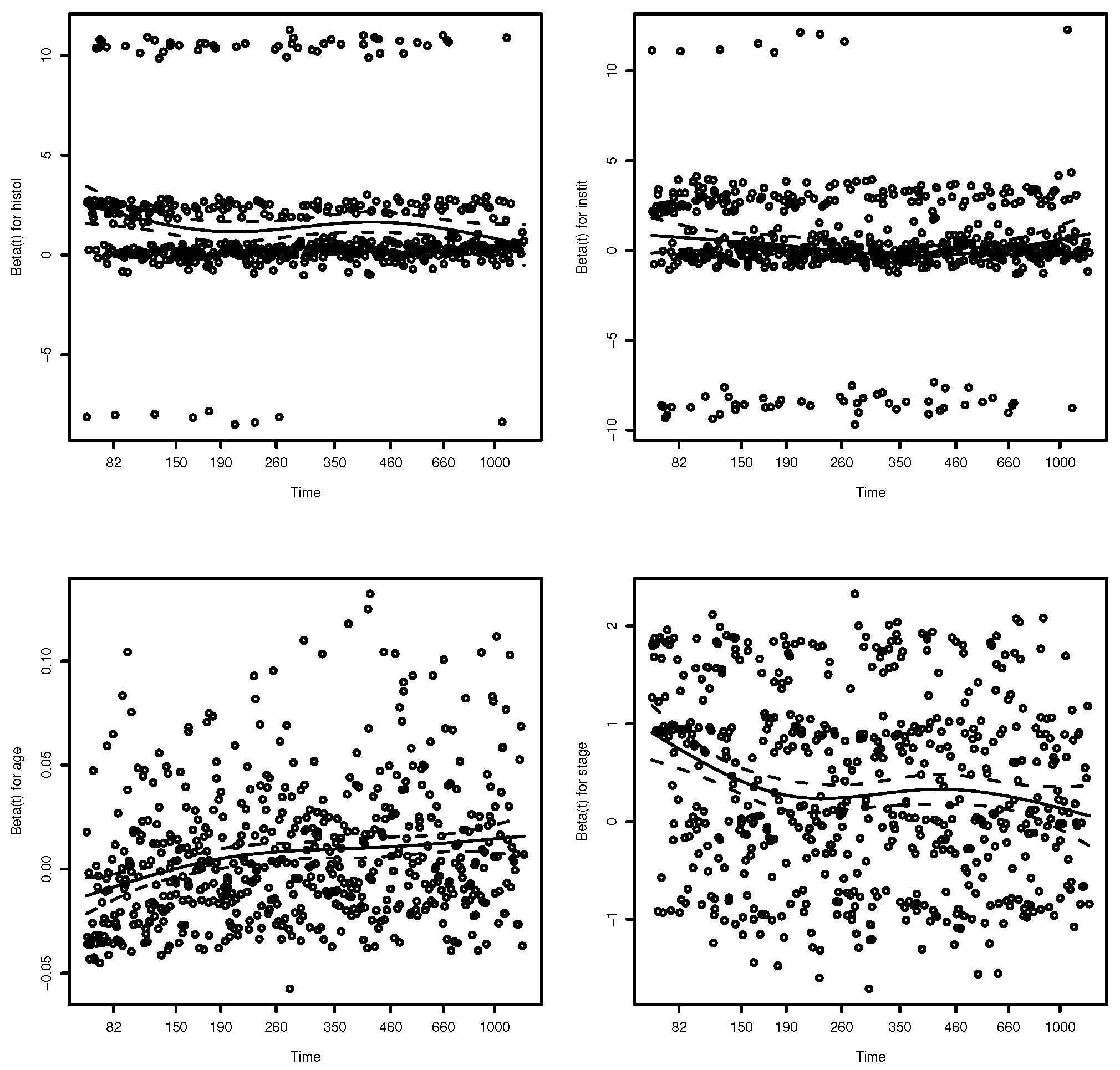 - Gill, R.D.; Schumaker, M. A simple test of the proportional hazards assumption. Biometrika 1987, 74, 289–300. [Google Scholar] [CrossRef]