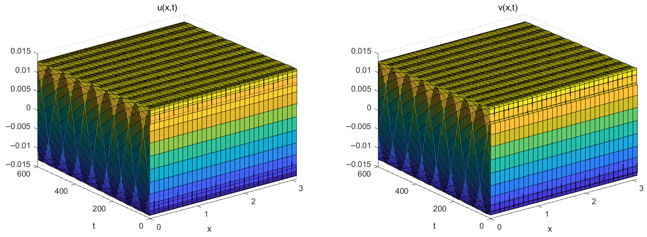 - Li, W.T.; Yan, X.P.; Zhang, C.H. Stability and Hopf bifurcation for a delayed cooperation diffusion system with Dirichlet boundary conditions. Chaos Solitons Fractals 2008, 38, 227–237. [Google Scholar] [CrossRef]