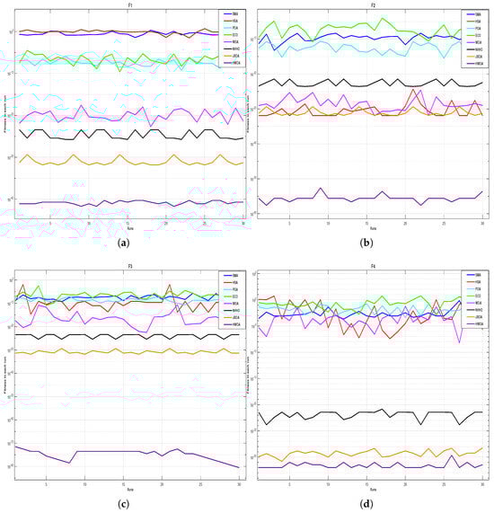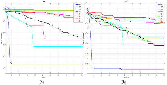 Remark 1. To find the optimal solution, the stopping criterion for the proposed method is . The criterion for determining the fitness values (functional value) is .