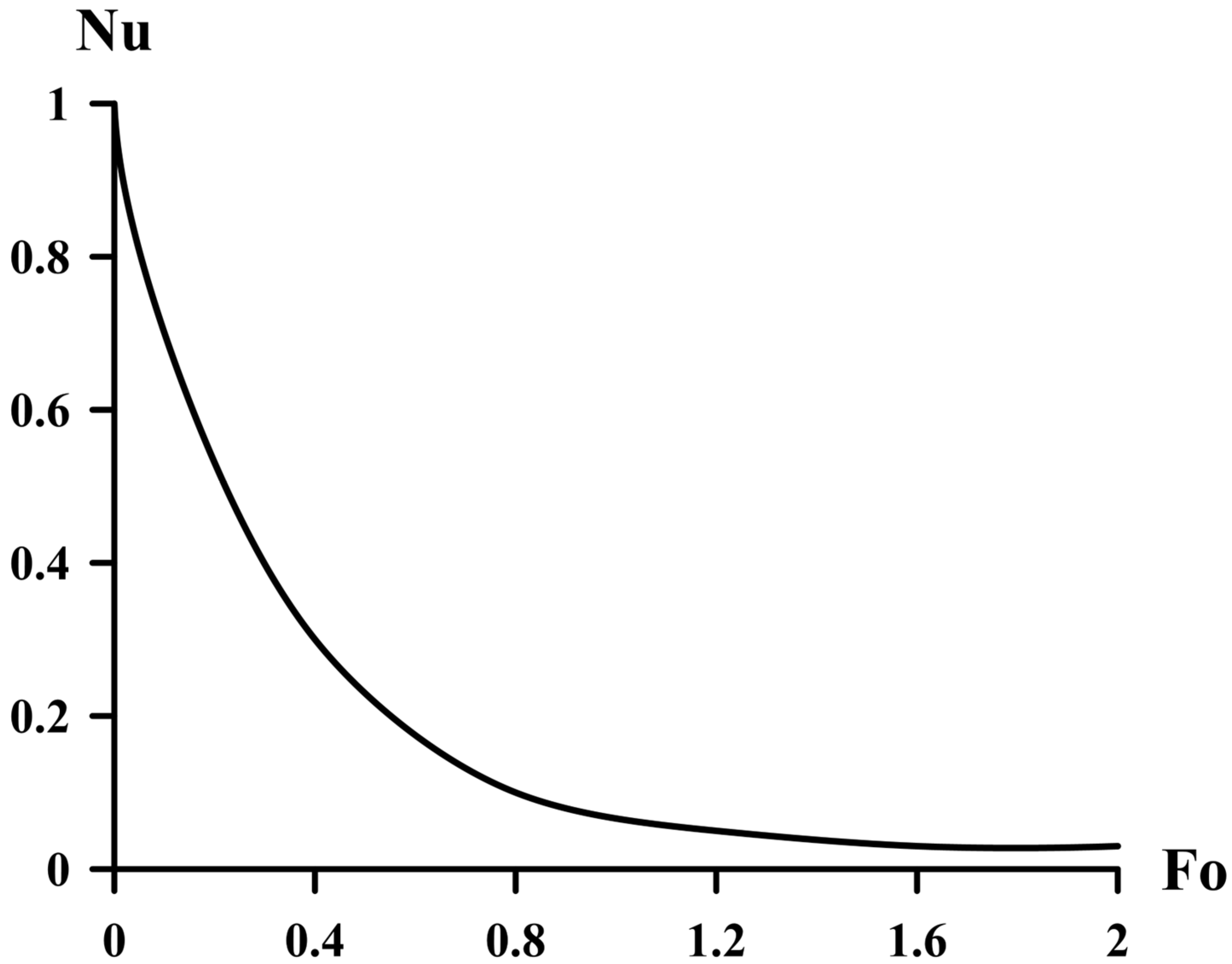 Equation (61) demonstrates that as soon as the Fourier number is null, the heat transfer coefficient approaches infinity due to the uniform initial temperature profile. With the Fourier number approaching infinity, the temperature profile becomes hyperbolic and the Nusselt number reaches unity.