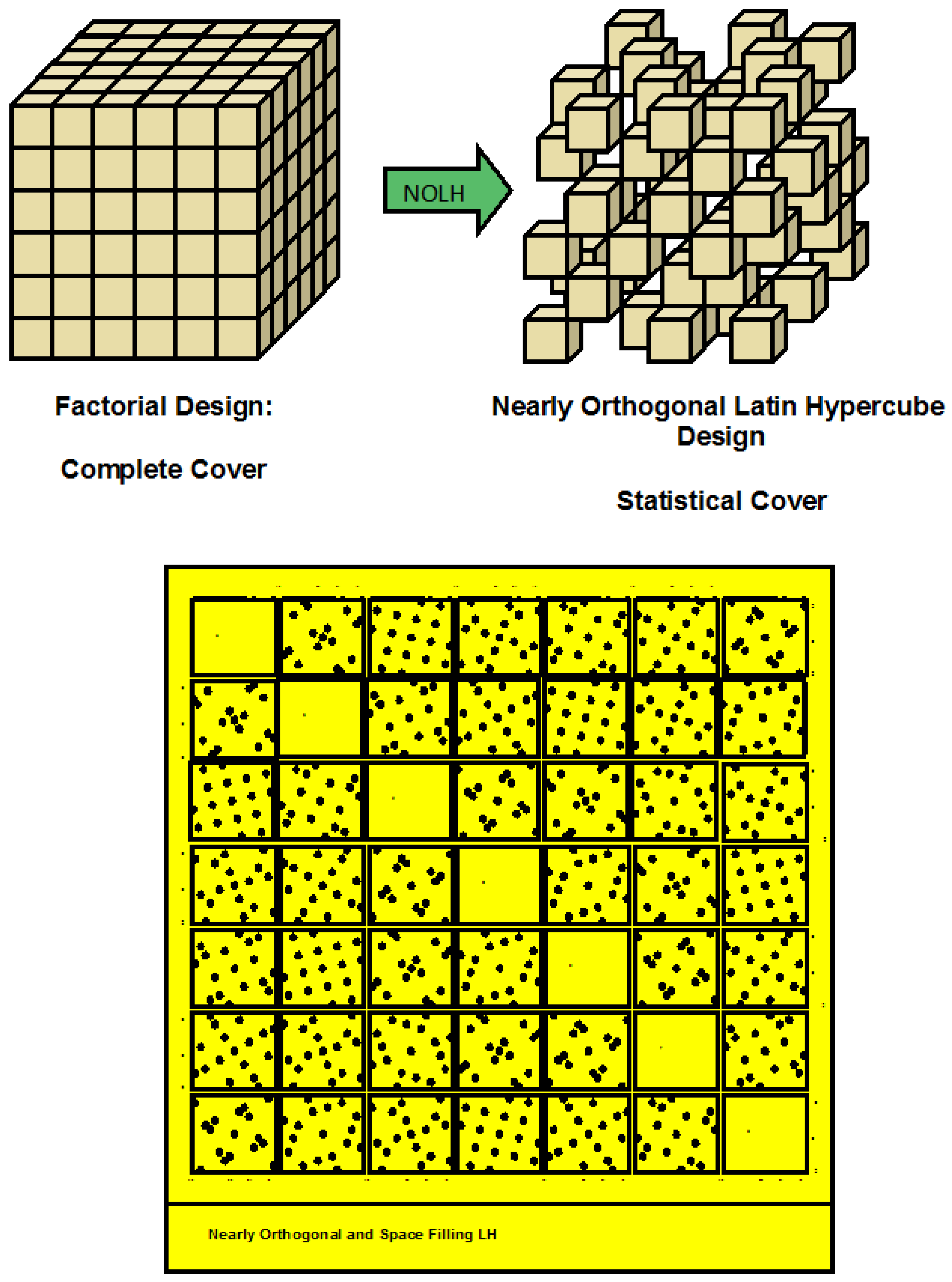 Figure 4 shows, in two very simplified representations, the complete covering of the parameter space on one side, and the statistical covering of the parameter space on the other side.