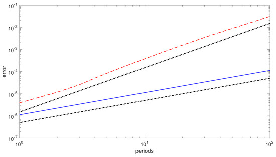 As a consequence, if H is a polynomial of degree . In such a case, , i.e., the energy is exactly conserved. Differently, one has, by virtue of (22) and Lemma 1:
