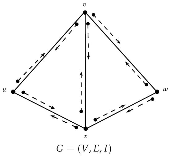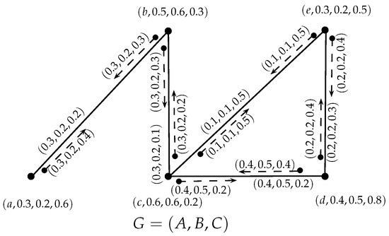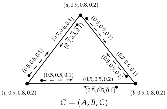 Let be a single-valued neutrosophic incidence graph associated with G, as shown in Figure 2, where