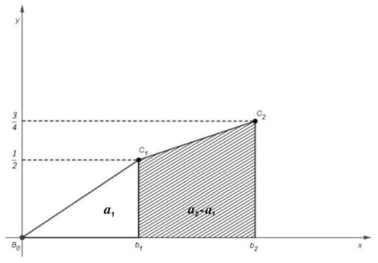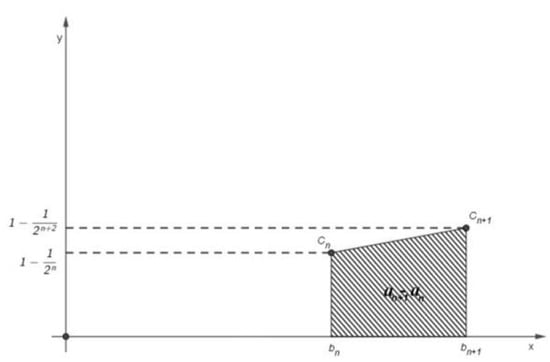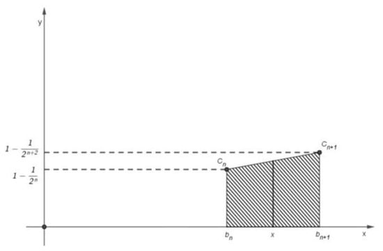 Let be a sequence, such that . Our goal is to construct a distribution function and an increasing sequence , such that for every n. Consider the points in the coordinate system, where , and (see Figure 1).