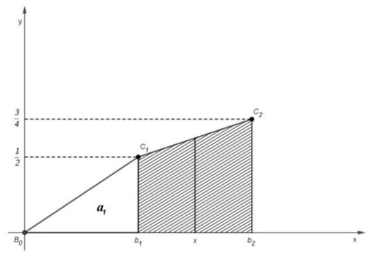 Denote the area of the triangle, defined by these points by . Clearly, Let x be a point in the interval Then, is the area of the triangle, defined by points and (see Figure 2).