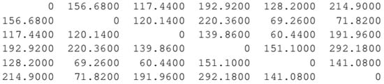 in which the matched distance is and the mismatched distance , where the optimal is defined as follows: . Proceed similarly, the distances for other pairs could also be obtained and the resulting adjacency matrix is demonstrated in Figure 3.