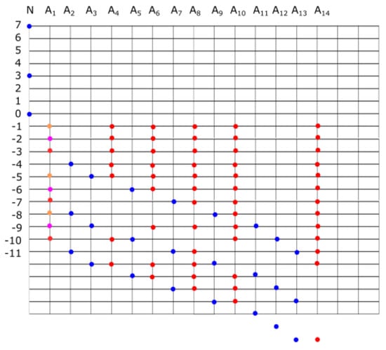 The state stabilizes in a finite number of steps (we provide an upper bound on this number). That is to say, there exists a state such that for all . Say represents the level at time . Then, stability means for all and for all , it is true and . Notice, the same diagram is valid under vertical displacements. In Figure 2, we illustrate the fact that the same system of states of Figure 1 holds under displacement of the energy levels (Figure 2).