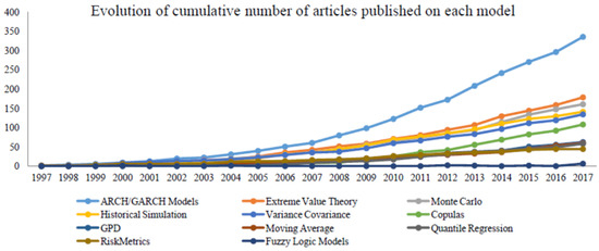 A more recent review, presented in [3], concerns studies for VaR computations including several approaches, related literature is relatively scarce, developed when uncertainty modeling is based on fuzzy logic; the authors show in Figure 1 the amount of articles within each methodology in a time period of twenty years.