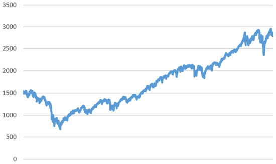 Daily values of the S&P500 index within the period from June 2007 to June 2019.