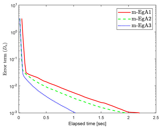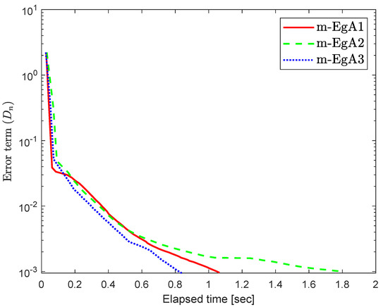 The experimental results are discussed in this section to illustrate the efficacy of our proposed Algorithm 1 (m-EgA3) compared to Algorithm 1 (m-EgA1) in [30] and Algorithm 2 (m-EgA2) in [30].