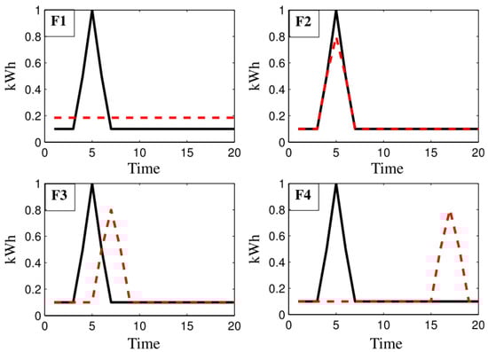 Figure 1 shows an example of a constant forecast (F1), which does not introduce any significant value to its user and has a smaller point-to-point error than a forecast with behavior closer to the real one but displaced in time (F3). While the F1 forecast has an MAE of 0.82, the F3 forecast has an MAE of 0.99.