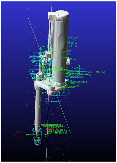We imported the 3D model into ADAMS and added the kinematic joint according to the actual constraints of the robot. In practice, it is difficult to add the constraints of all components accurately. Therefore, in order to simplify the simulation’s complexity without affecting the accuracy of static force simulation, we simplified the structure of the robot by removing screws, caps and so on, which are small in both volume and mass. The imported 3D model in ADAMS is shown in Figure 10.