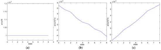 Error of simulation 2. (a) Upper kinematic chain. (b) Bottom kinematic chain 1. (c) Bottom kinematic chain 2.