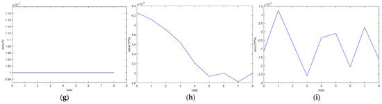 Errors of simulation 3, simulation 4 and simulation 5. (a) Upper chain in simulation 3. (b) Bottom chain 1 in simulation 3. (c) Bottom chain 2 in simulation 3. (d) Upper chain in simulation 4. (e) Bottom chain 1 in simulation 4. (f) Bottom chain 2 in simulation 4. (g) Upper chain in simulation 5. (h) Bottom chain 1 in simulation 5. (i) Bottom chain 2 in simulation 5.