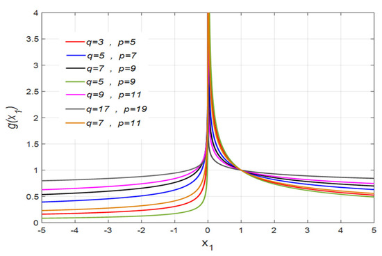 where is the controller parameter, and and are positive odd numbers satisfying the following condition . A control law determination is based on the fulfilment of the following condition: . In fact, for this particular case, a Lyapunov function is considered as , and representing the condition of stability of Lyapunov function or . Given the equations of (1) and (2), we have: