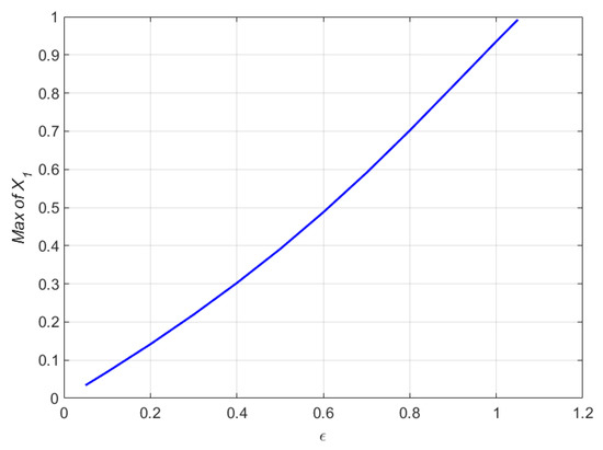 Figure 13 illustrates the highest variance in vs. . As can be seen from the graph, raising raises the maximum value of , while increasing raises the maximum value of to 1. As a result, the sliding mode controller’s stability region is established for . For , the controller is unable to maintain the microstructure’s stability.
