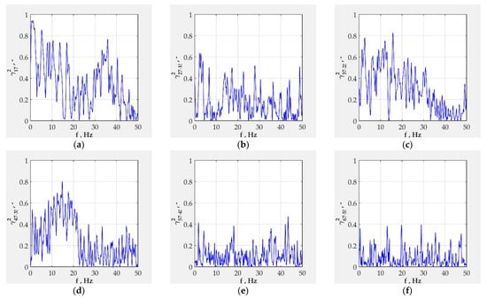 Theoretical aspects of conditioned spectral analysis are well known and comprehensively presented in [,], so they will not be elaborated in detail. Least square estimates were used for obtaining the optimum systems for unconditioned and conditioned inputs (described by optimal frequency response functions Hij and Lij, respectively), which minimize the auto-spectral density function of the output noise, Snn. Here, the optimum system is defined as a linear system which produces minimum mean square system error. The mentioned theory was used to formulate the algorithm for the conditioned spectral analysis of the experimental data in this particular case.
