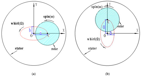 In real operational conditions, the eccentric movement of the sealed rotor will cause the uneven distribution of the fluid pressure at the sealing gap, resulting in fluid self-excitation. The annular seal between stator and rotor substantively acts as a bearing, which affects the rotordynamic characteristic of the turbomachinery rotor system, as show in Figure 1.