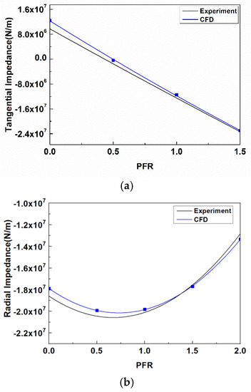 Tangential impedance (a) and radial impedance (b) curves for the annular seal.