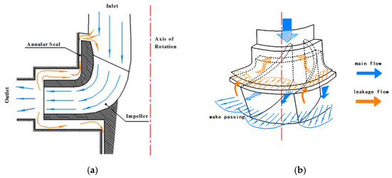 Turbomachinery has been commonly used in modern industry to meet stringent cost-effectiveness, high energy conversion efficiency, high power to weight ratio, high reliability and rigid safety requirements. Especially in terms of safety requirements during its long-time service, the canned motor Reactor Coolant Pump (RCP) has attracted more attention. In the 1970s, when NASA tested aero-engines, it was found that the turbopump rotor part of the airplanes’ main engine would suffer from whirl instability under extreme working conditions. Afterward, the researchers conducted a lot of research on the leakage of the smooth ring and the labyrinth seal ring and found that the excitation force generated by the internal flow has a significant impact on the dynamic characteristics of the rotor. During the first endurance test of the AP series nuclear reactor canned motor main pump designed by the EMD company (Chicago, IL, USA) in 2009, the bearing failure occurred on account of the interaction between the complex internal flow field of the canned motor main pump and the rotor, which affects the rotor stability. It is believed that the annular seal between the stator and rotor substantively acts as a bearing, which affects the rotordynamic characteristic of the turbomachinery rotor system [1,2]. Therefore, the rotordynamic instability problems of high-performance turbomachines have received more attention among designers [3,4].