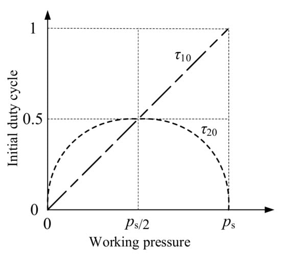 - When the working pressure pc is small (<ps/2), it means that the charging ability is stronger than the discharging ability because the pressure difference of the charging HSV is larger than that of the discharging HSV. To ensure that the charging ability equals the discharging ability, τ20 should be greater than τ10.