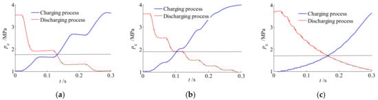 - When the working pressure pc is large (>ps/2), it means that the charging ability is weaker than the discharging ability because the pressure difference of the charging HSV is smaller than that of the discharging HSV. To ensure that the charging ability equals the discharging ability, τ10 should be greater than τ20.