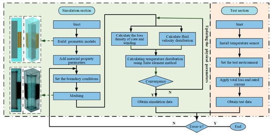 In this paper, FEM is used to calculate the temperature distribution of the coupled multi-physical field of the transformer. The flow field-temperature field coupling field is calculated by the iteration method. The flowchart for calculating the transformer temperature rise is shown in Figure 2.