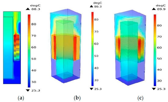 - Tomczuk, B.Z.; Koteras, D.; Waindok, A. Electromagnetic and temperature 3-D fields for the modular transformers heating under high-frequency operation. IEEE Trans. Magn. 2014, 50, 317–320. [Google Scholar] [CrossRef]