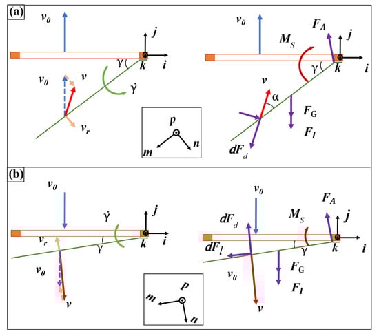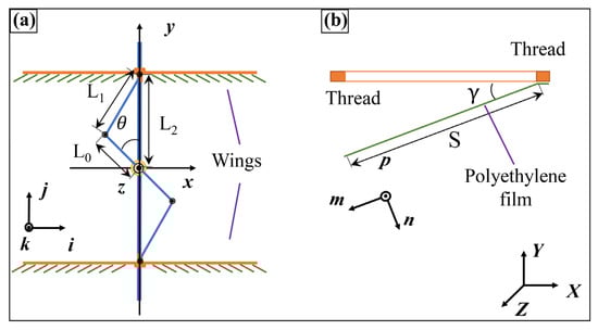 In the process of vibration, the film produces a bending motion because of gravity, inertial force, and wind resistance. For the calculation, it was assumed that the film was rigid and produced bending deformation at the bonded end with the frame; the motion and force analysis is shown in Figure 8. In the power stroke, the relationship between the unit vector [m,n,p] and fixed coordinate system of the vehicle is: