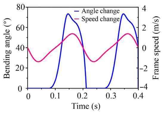 Spiracle film angle change and frame vibration velocity change curve with time.