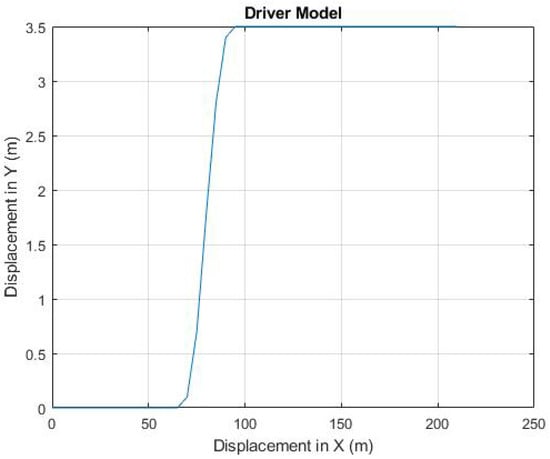 The built-in driver model is an optimal preview driver model [], which has been incorporated in the commercial software package, CarSim, for closed-loop simulations of road vehicles. The driver model was derived by minimizing a cost function defined as a mean squared error between a predicted and a target lateral position. Experiment and simulation results demonstrated that driver steering in path-following maneuvers can be accurately modeled as a time-delay optimal preview control.