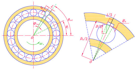 When there is a defect on the outer raceway, as shown in Figure 6, the maximum value of H0 can be expressed as: