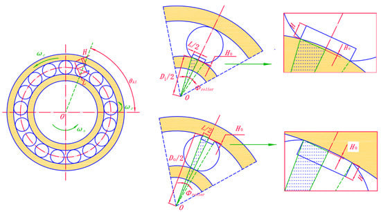 where ωc is the rotation angular speed of the cage, and N is the number of single row rollers. It can be expressed as: