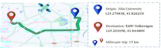 As mentioned above, naturalistic driving data was collected by a GPS receiver (product model: FRII-D). Concretely, the specific driver drove on the route shown in Figure 2 for 331 working days (1 April 2020 to 28 July 2021) and collected a large amount of naturalistic driving data (more than 40,000 s). However, the collected data often contained bad data, which needed to be preprocessed to obtain driving data consistent with the actual driving cycles of the driver.