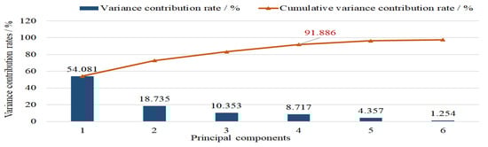 The variance contribution rate of principal component is , and the cumulative variance contribution rate of principal components is .