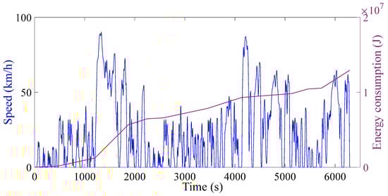 In order to verify the effectiveness of the proposed FCV energy generation method, another long-term driving cycle (more than 6000 s) was extracted from the preprocessed naturalistic driving database, as shown in Figure 15. The results of the LVQ identification algorithm and energy consumption generation method are shown in Figure 16 and Figure 17.