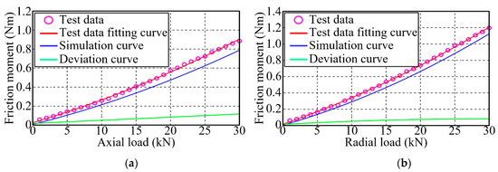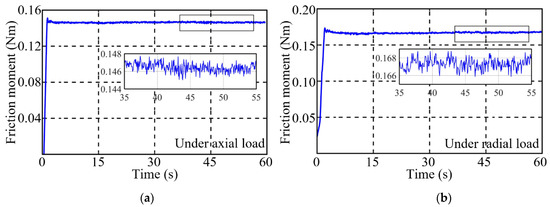 Friction torque curve under axial load and radial load. (a) Friction torque curve under axial load. (b) Friction torque curve under radial load.
