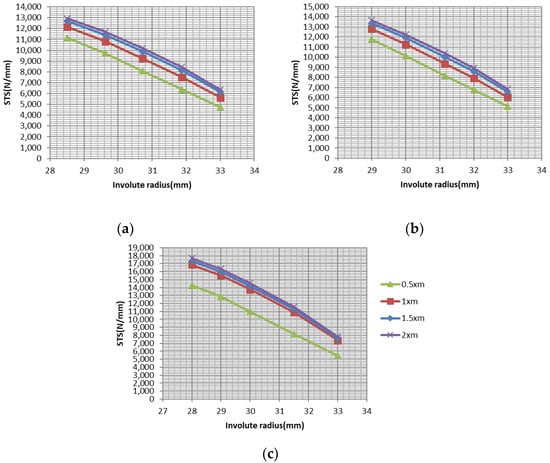 - STS and MS increase with increasing RT. When the RT is increased from 0.5 xm to 2 xm for all DSPAs, single tooth stiffness increases by approximately 20%.
