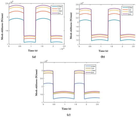 After obtaining the deformations for different gear parameters, the single tooth stiffnesses are obtained by dividing these deformations by the applied force (Equations (1)–(4)).