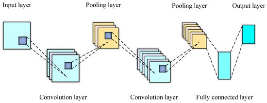 As shown in Figure 1, the structure of a CNN mainly includes an input layer, a convolutional layer, a pooling layer, a fully connected layer and an output layer [26]. The structural layers are equivalent to filters between them, which can remove the noise from the feature data effectively. The main computational steps of a CNN are shown below.