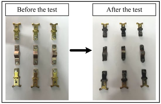 In order to prove the feasibility and accuracy of the method in this paper, the CJX2–8011 AC contactor was used for verification, and a comparison of the three-phase contact ablation before and after the sample test is shown in Figure 14.